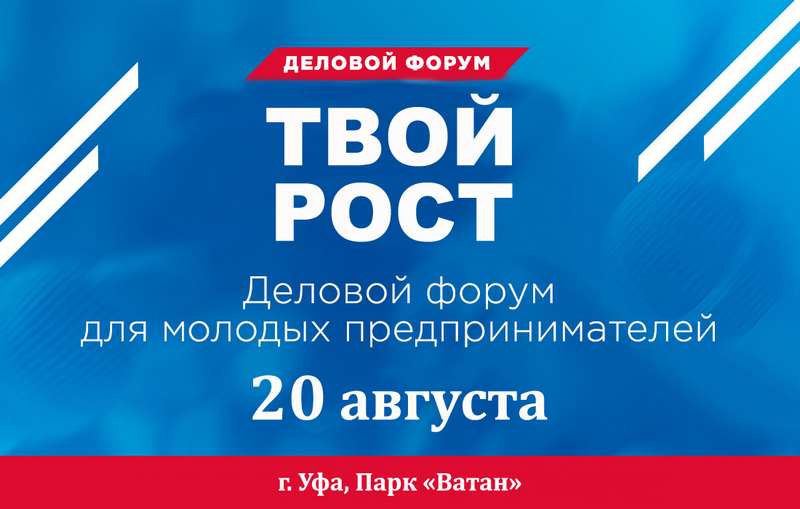 20 августа 2016 года в г. Уфа на территории парка ватан состоится форум «твой рост». Организаторами Форума выступили общественные организации поддержки предпринимательства БРО ООО «Деловая Россия» и БРО ООО «ОПОРА РОССИИ», совместно с Партией Роста. Форум откроется Пленарным заседанием, на котором примут участие Уполномоченный по защите прав предпринимателей Российской Федерации, председатель Партии Роста Борис Титов, председатель Государственного комитета Республики Башкортостан Вячеслав Гилязитдинов, Уполномоченный по защите прав предпринимателей в Республике Башкортостан Рафаиль Гибадуллин, министр молодежной политики и спорта Андрей Иванюта, генеральный директор Фонда развития и поддержки малого предпринимательства Республики Башкортостан Денис Мусин. Будут затронуты такие актуальные вопросы предпринимательства, как доступ бизнеса к кредитным ресурсам, административные барьеры, законодательство в сфере предпринимательства, фискальная нагрузка, привлечение инвестиций и многое другое.