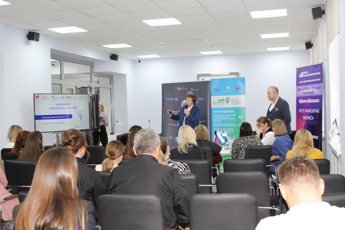 Программа «Акселератор социальных проектов» состояла из нескольких этапов в течение двух месяцев плотной работы в онлайн-формате. Изначально на обучение поступило более 100 заявок. Предприниматели самостоятельно проходили Предакселерационную часть, которая включала 19 онлайн-уроков. Только те, кто успешно прошел обучение на платформе и смог положительно сдать итоговое тестирование, были переведены в следующий этап – Акселератор. Там уже их ждали живые вебинары, групповые и индивидуальные консультации с федеральными и республиканскими спикерами.