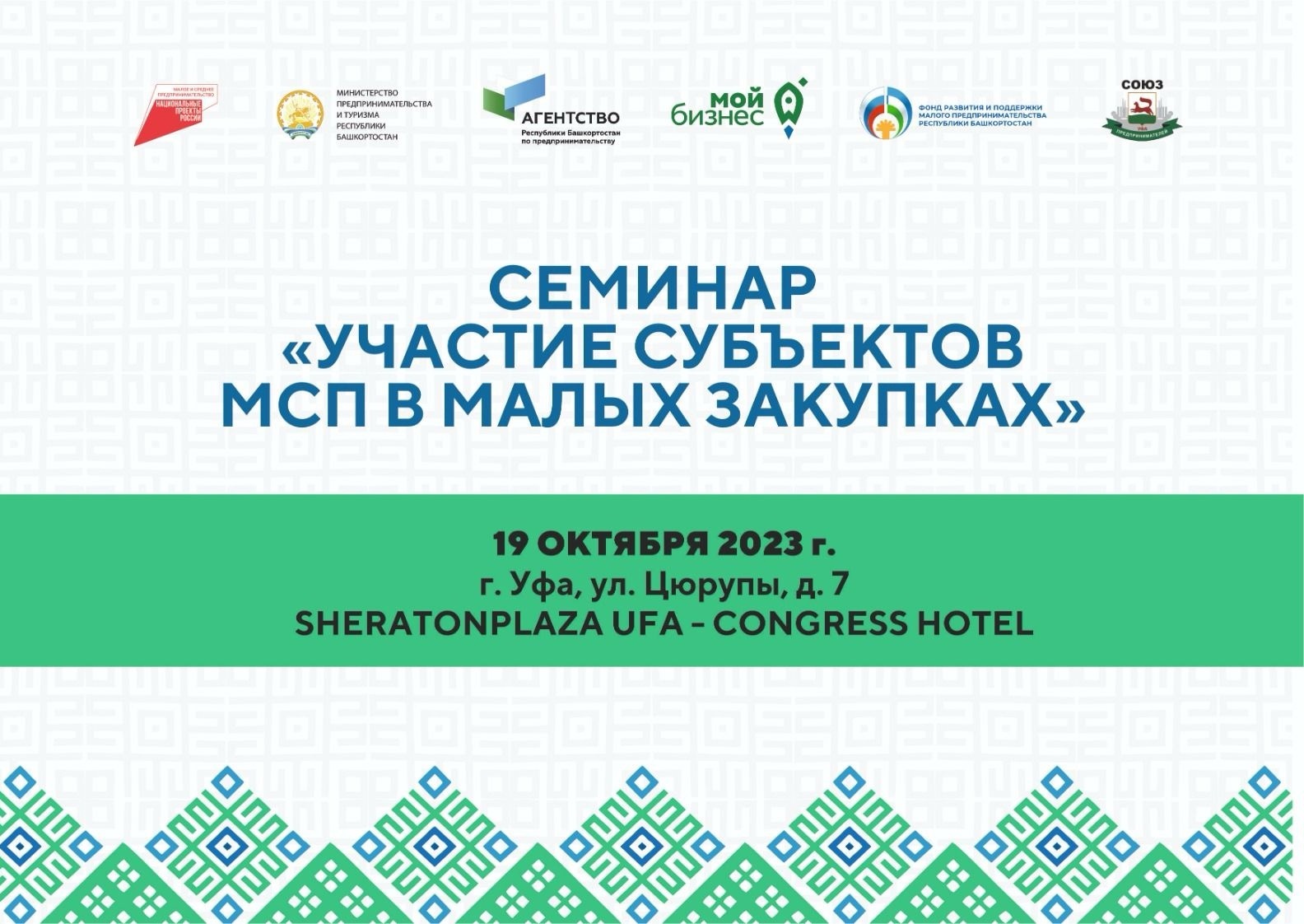 В рамках национального проекта «Малое и среднее предпринимательство и поддержка индивидуальной предпринимательской инициативы» 19 октября в Уфе состоится цикл семинаров кейсов на тему: «Участие субъектов малого и среднего предпринимательства в малых закупках».