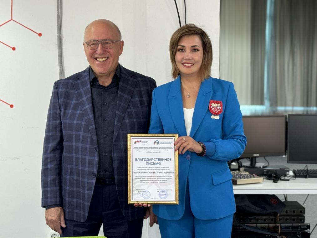 В завершение заседания член Общественного совета при Министерстве предпринимательства и туризма Республики Башкортостан, председатель Совета Ассоциации организаций предпринимательства Республики Башкортостан Алексей Щербацкий был награжден благодарственным письмом Министерства за вклад в развитие предпринимательства и туризма и благодарственным письмом Фонда развития и поддержки малого предпринимательства Республики Башкортостан, Филиала Государственного Фонда поддержки участников специальной военной операции «Защитники Отечества» по Республике Башкортостан за поддержку специальной военной операции и содействие в проведении благотворительного музыкального вечера Ноты памяти «И поет мне в землянке гармонь…».