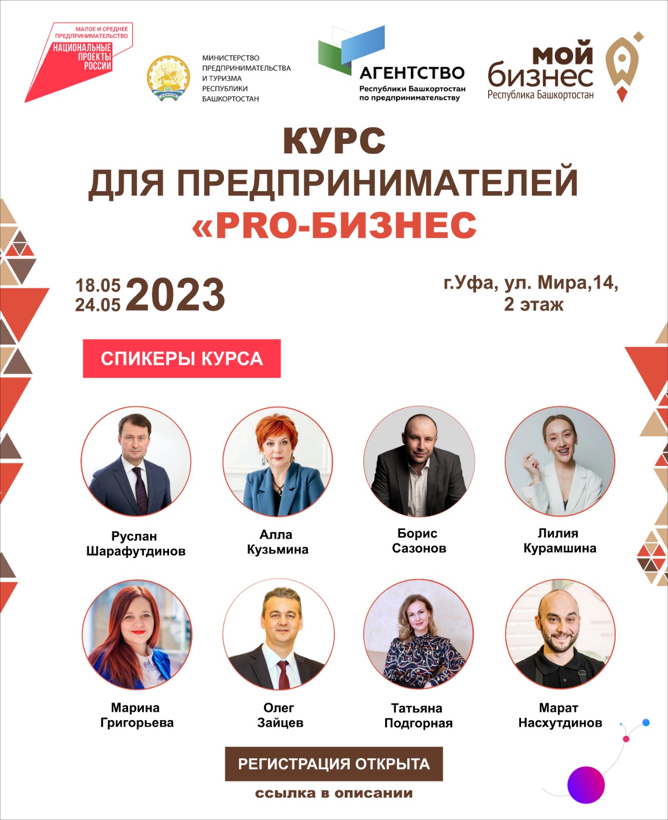 ✅Организаторами мероприятия выступают Центр «Мой бизнес» Агентства Республики Башкортостан по предпринимательству при поддержке Министерство предпринимательства и туризма РБ. Оператор Фонд развития и поддержки малого предпринимательства Республики Башкортостан.