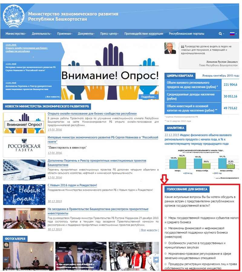В рамках работы Проектного офиса по улучшению инвестиционного климата Республики Башкортостан на сайте Минэкономразвития РБ открыто онлайн голосование для предпринимателей республики.