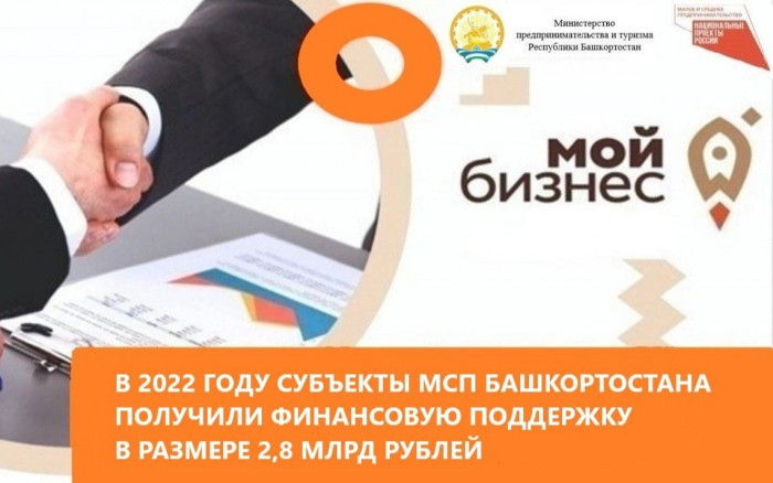 В 2022 году институтами развития бизнеса предоставлена поддержка субъектам малого и среднего предпринимательства Республики Башкортостан на сумму 2,8 млрд рублей. Финансовые меры поддержки реализованы в рамках национального проекта «Малое и среднее предпринимательство и поддержка индивидуальной предпринимательской инициативы» и были направлены на открытие собственного дела, а также на расширение действующего бизнеса.
