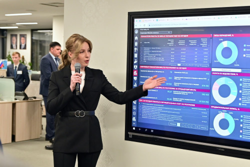Максим Решетников в рамках рабочего визита в Башкортостан посетил Центр управления Республикой, где ему представили дашборд МФЦ, который в режиме реального времени отображает ключевые индикаторы деятельности центров госуслуг региона.