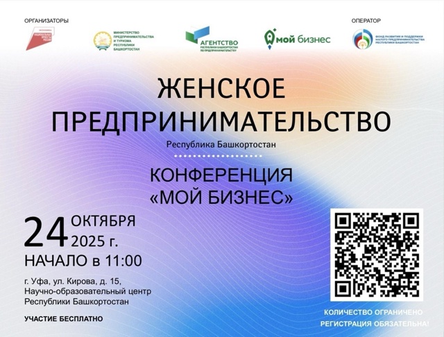 24 октября 2025 года в Уфе на площадке Научно-образовательного центра Республики Башкортостан состоится конференция «Мой бизнес» Республика Башкортостан. «Женское предпринимательство».